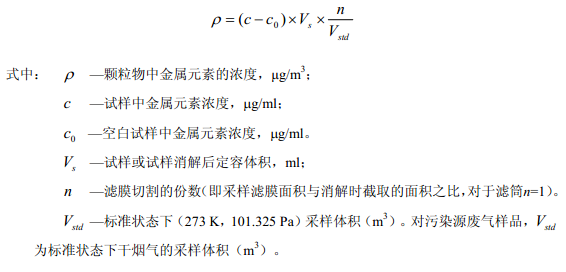 9.1 結果計算 顆粒物中金屬元素的濃度按下列公式計算: