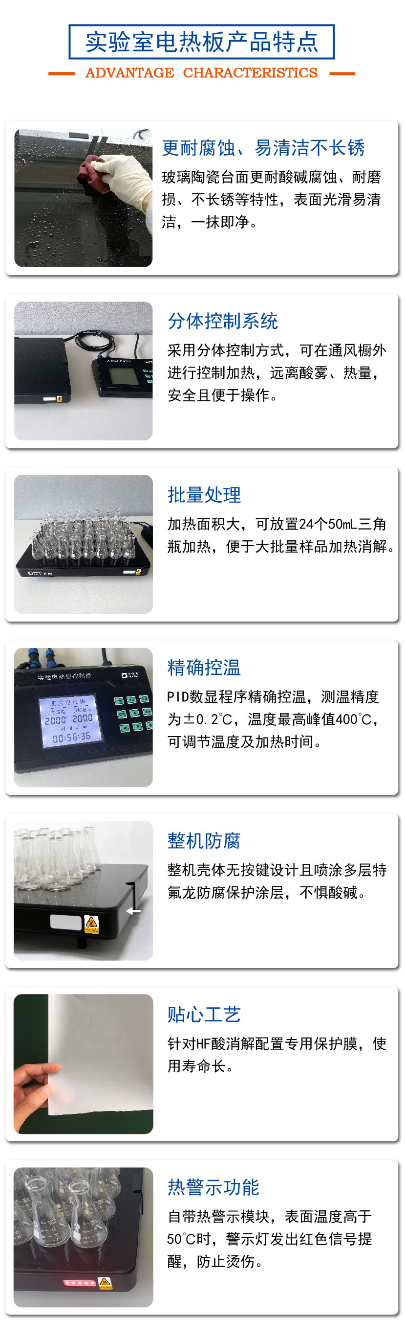 5.鉑金電阻精確控溫,升溫快速、加熱均勻,溫度可達400℃。
