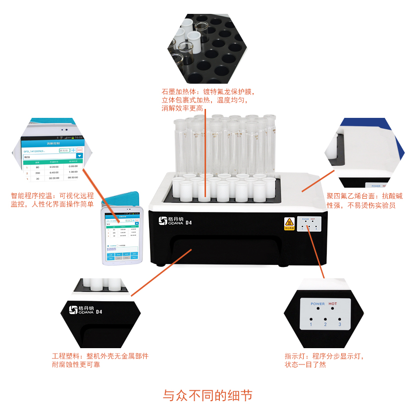 D4智能石墨消解儀采用高純石墨材料作為加熱體,包裹式加熱,效率更高,溫度均勻性更好。多孔設計,輕松實現(xiàn)樣品的批量處理,是您樣品消解的好伴侶。