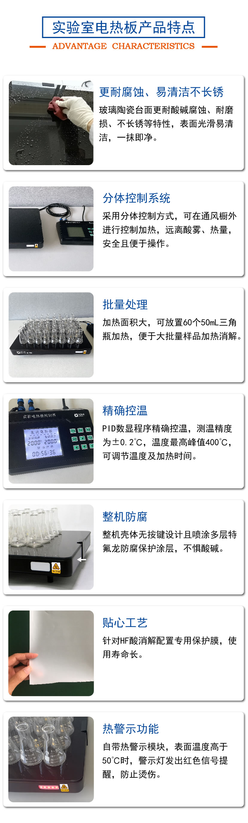 HT-400陶瓷加熱板專用于無機化學元素分析時對各類樣品作加熱、消煮、趕酸用的恒溫加熱裝置。臺面具有耐酸堿,不生銹等特性;分體PID程序數顯控溫,是實驗室樣品預處理好助手。