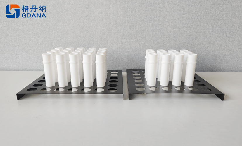 單層支架為表面噴涂特氟龍防腐涂層,可批量轉移消解管,有效提高同一批加熱樣品一致性,提高效率及實驗數據。25孔、36孔、39孔、56孔、60孔可選配。