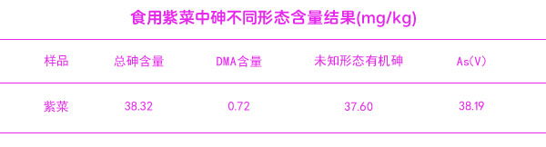 食用紫菜中砷不同形態含量的結果