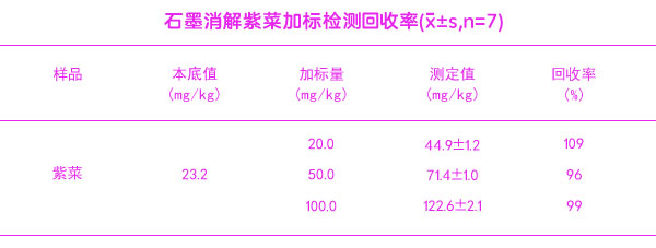 石墨消解紫菜加標檢測回收率結果