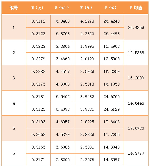 3)消解完成后,冷卻至室溫,用凱氏定氮儀進行蒸餾滴定,打印出檢測結(jié)果。同時做空白實驗。