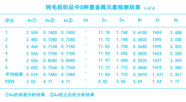 紡織品8種重金屬元素檢測(cè)結(jié)果