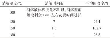 表1 不同溫度時的消解時間和回收率(n=3)